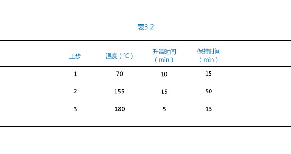 測(cè)As時(shí)采用如下消解步驟:稱取0.3g樣品小麥粉加到消解管,加入硫酸2ml,硝酸3ml,高氯酸0.5ml,左右搖動(dòng)玻璃管使樣品與消解液充分混合。采用如表3.3的消解程序啟動(dòng)石墨消解儀,冒白煙即可。消解完后,取下消解管,冷卻至室溫,加入硫脲+抗壞血酸做還原劑,定容待分析。