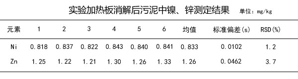 由上面表中可以看出,污泥中的鎳、鋅濃度均處在較低水平,6次測定結果的精密度和準確度均較好。