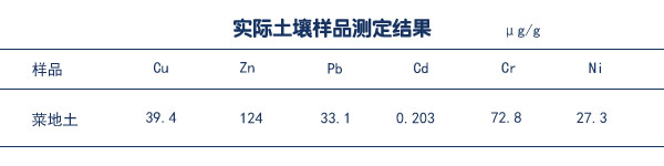 采用電熱板消解方法對菜地土壤進行加標實驗消解分析,每個樣品平行測定3份結果如下表,并進行加標回收率的測定情況(見表回收率測定結果)和實際樣品及標準樣品測定的偏差情況較吻合。