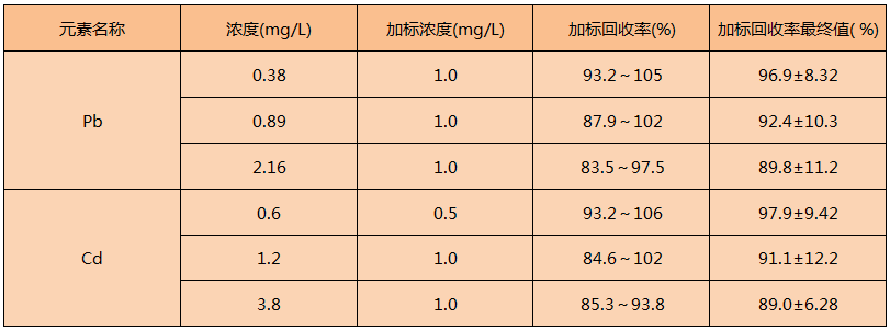 從表中得知,實(shí)驗(yàn)方法測(cè)定樣品的準(zhǔn)確度結(jié)果滿足實(shí)驗(yàn)要求,該方法適用于固體廢物的消解。