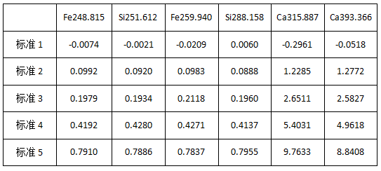 從加標回收率數據可知,鐵和鈣的數據均在范圍內,硅的干擾較大,可能是實驗稀釋和轉移過程中,引入了雜質,造成回收率偏高。