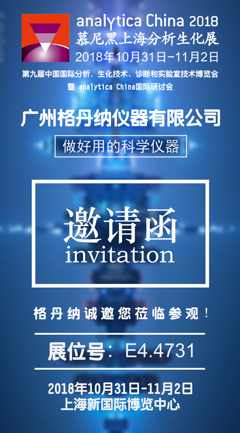 第九屆analytica China 2018格丹納以樣品前處理設備展現:DS-72全自動消解儀、DS-360系列智能石墨消解儀、N-12全自動氮吹濃縮儀、HT系列實驗室電熱板。專業的實驗室前處理設備三天與現場觀眾零距離接觸,打造實驗室智能化、自動化實驗室方案服務,屆時歡迎大家前來參觀指導。